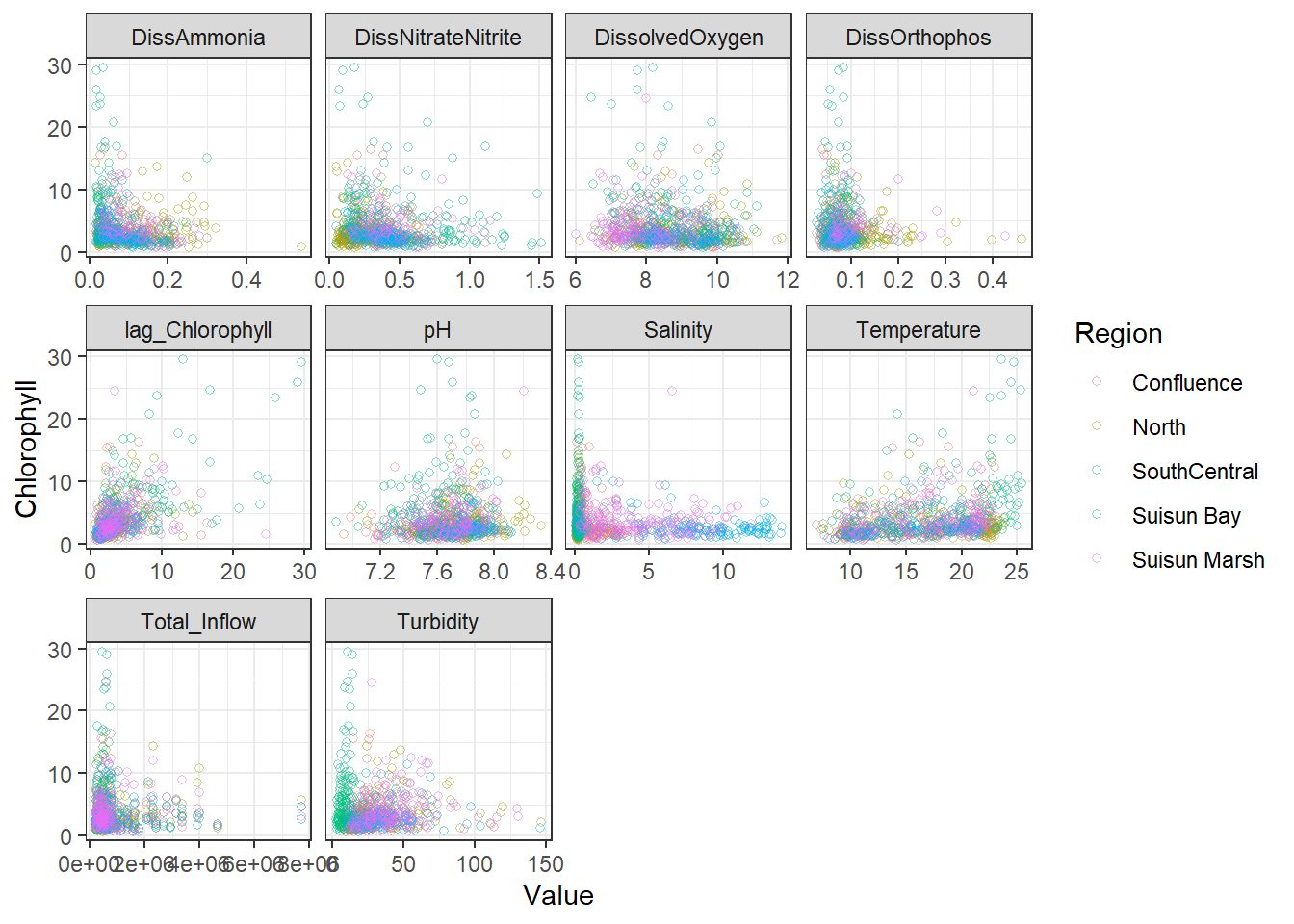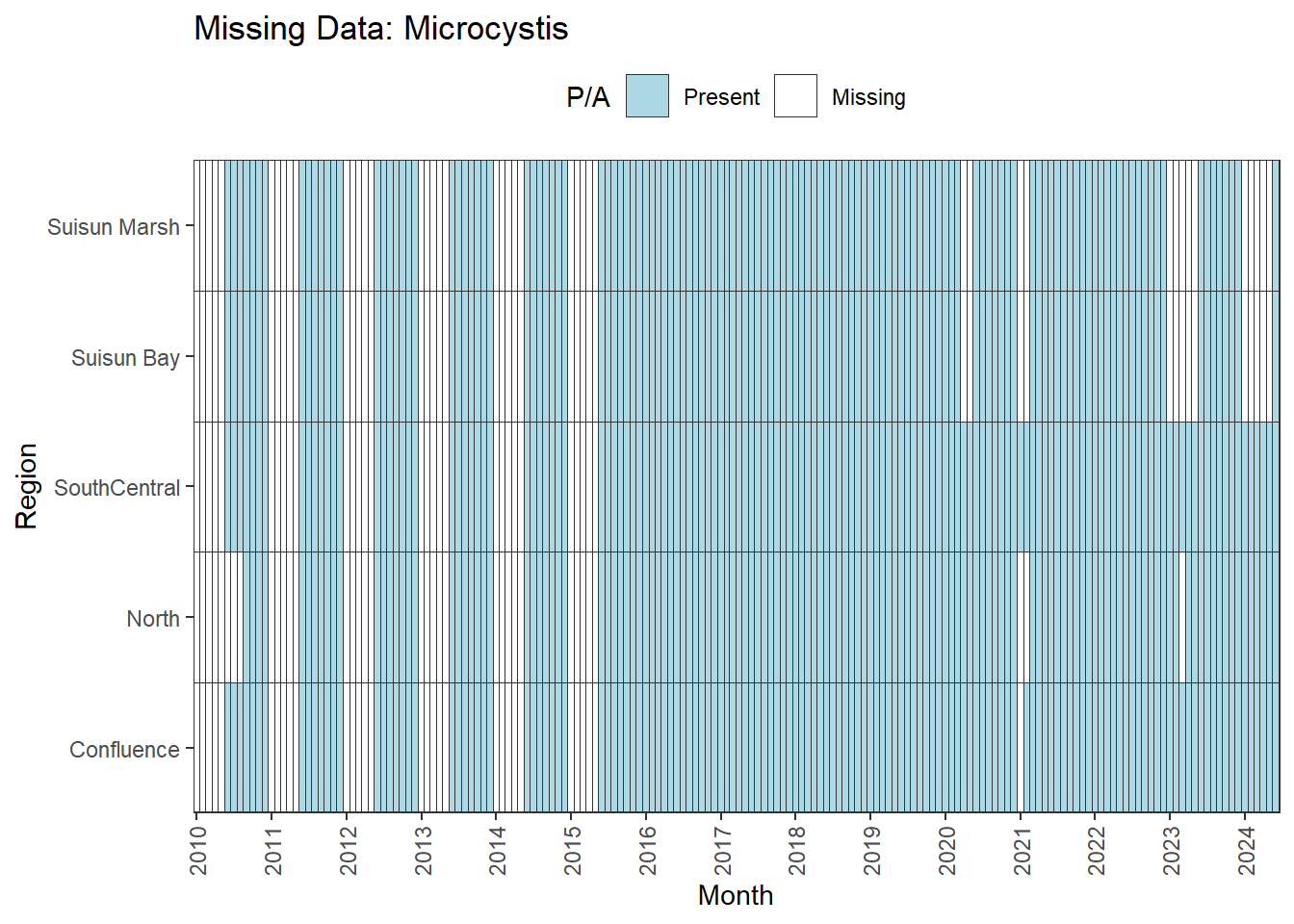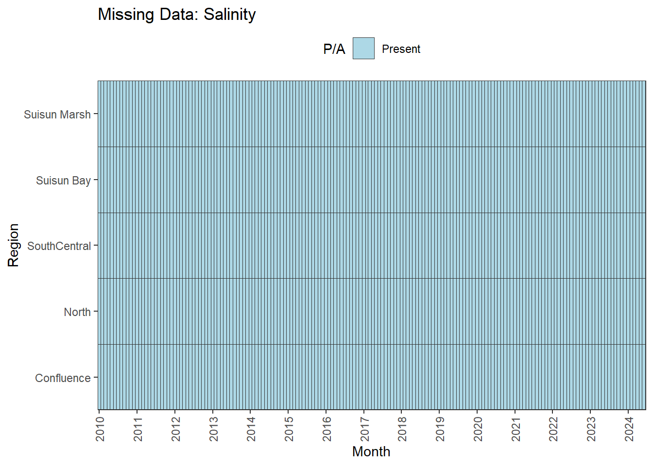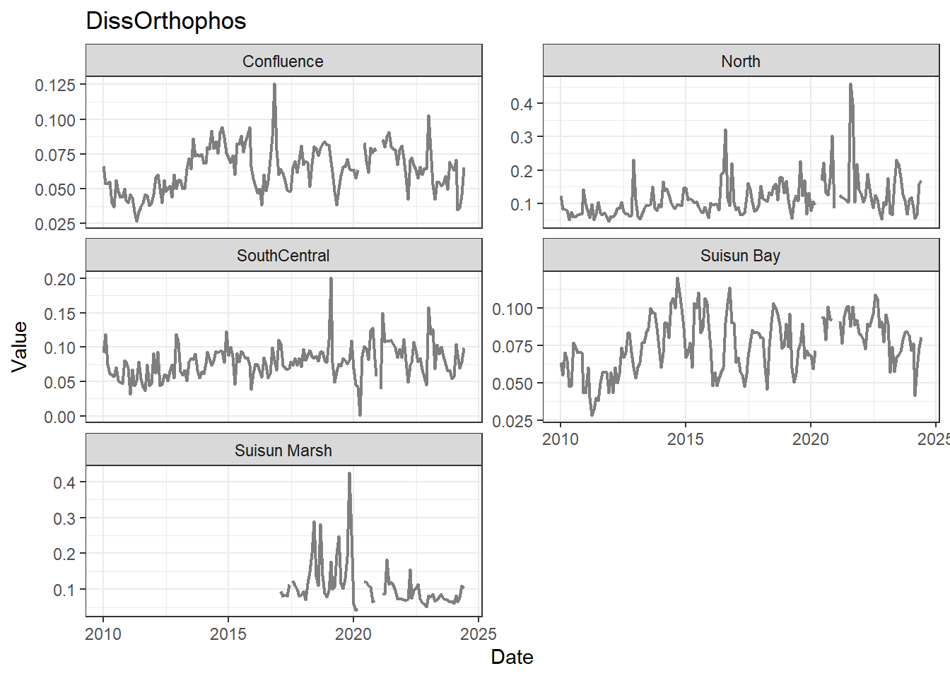 **missing data (Suisun Marsh):** DissAmmonia, DissNitrateNitrite, DissOrthophos, DON, TKN, TotPhos