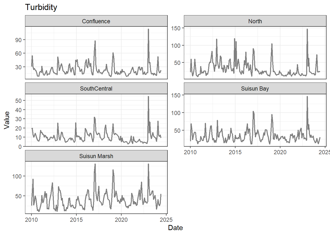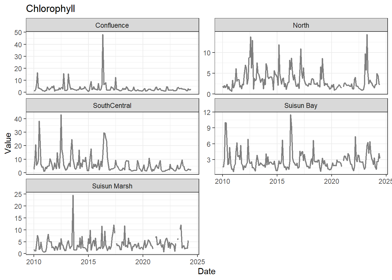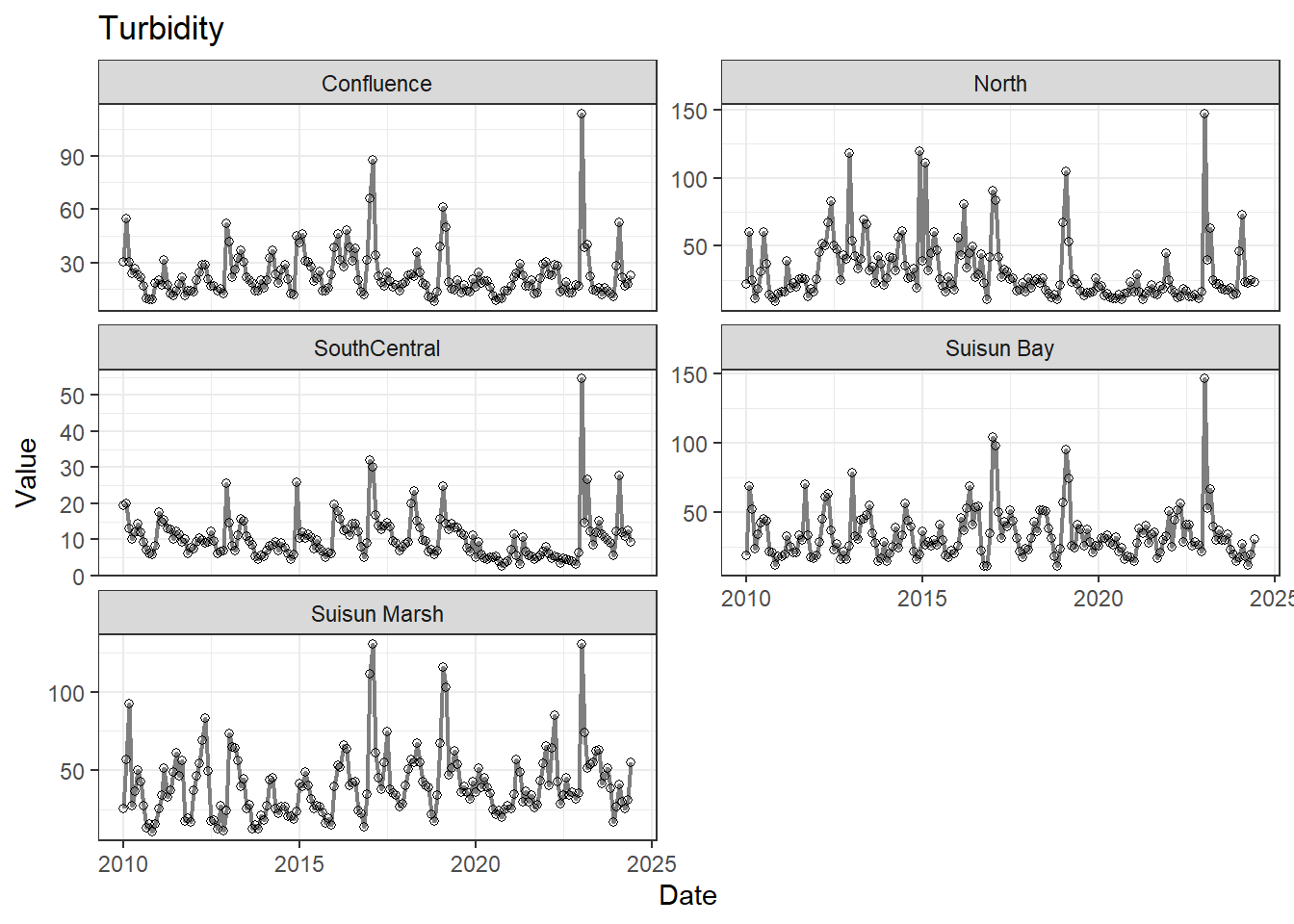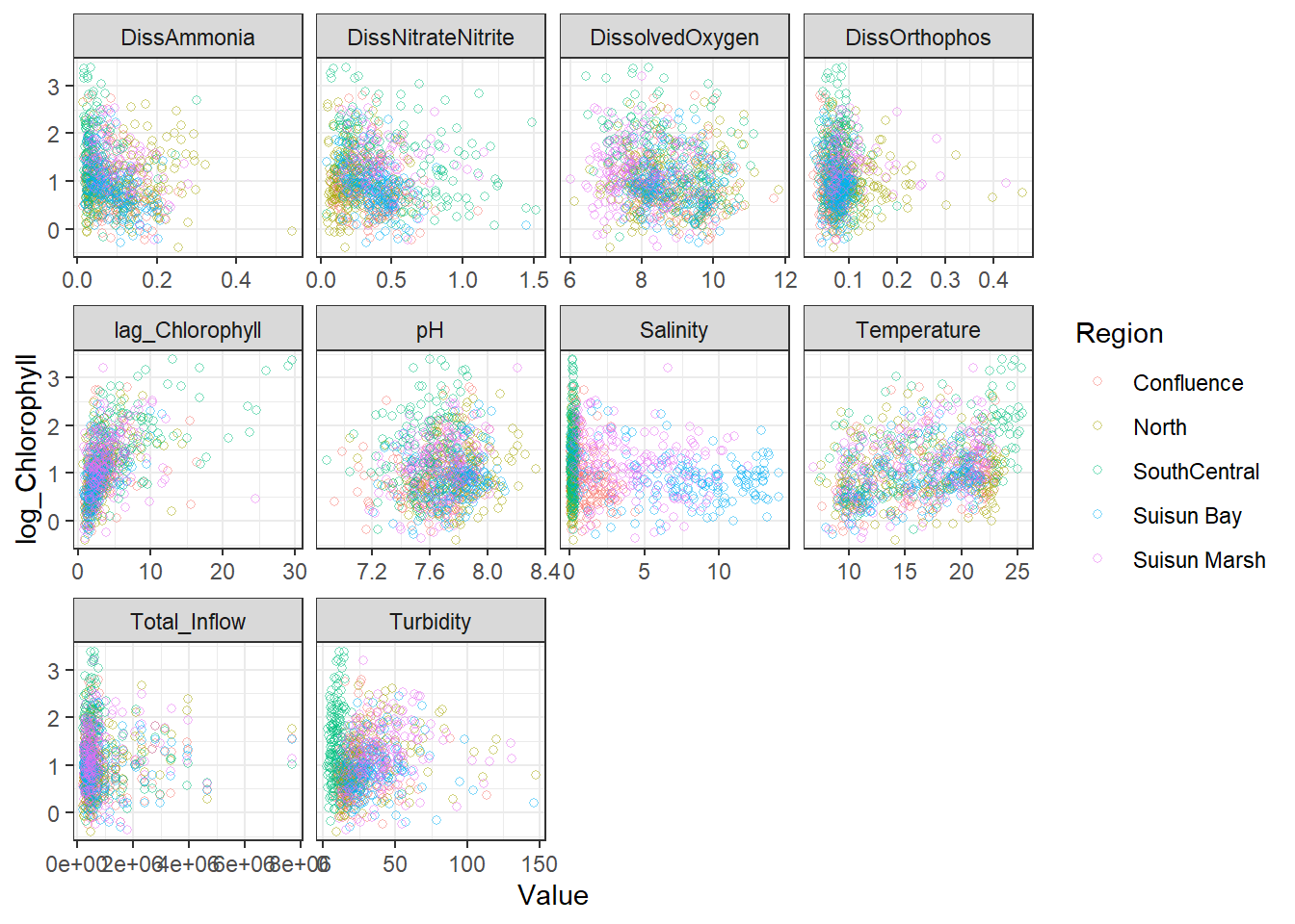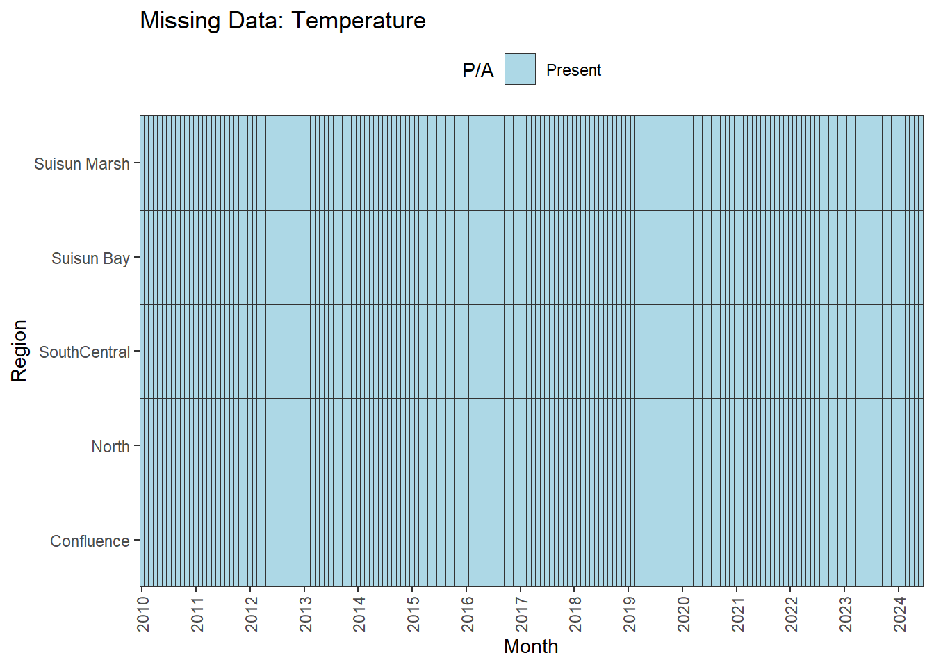 **missing data (Suisun Marsh):** DissAmmonia, DissNitrateNitrite, DissOrthophos, DON, TKN, TotPhos