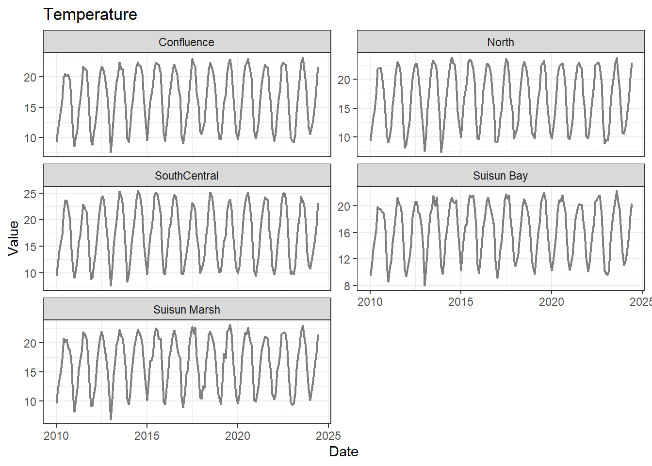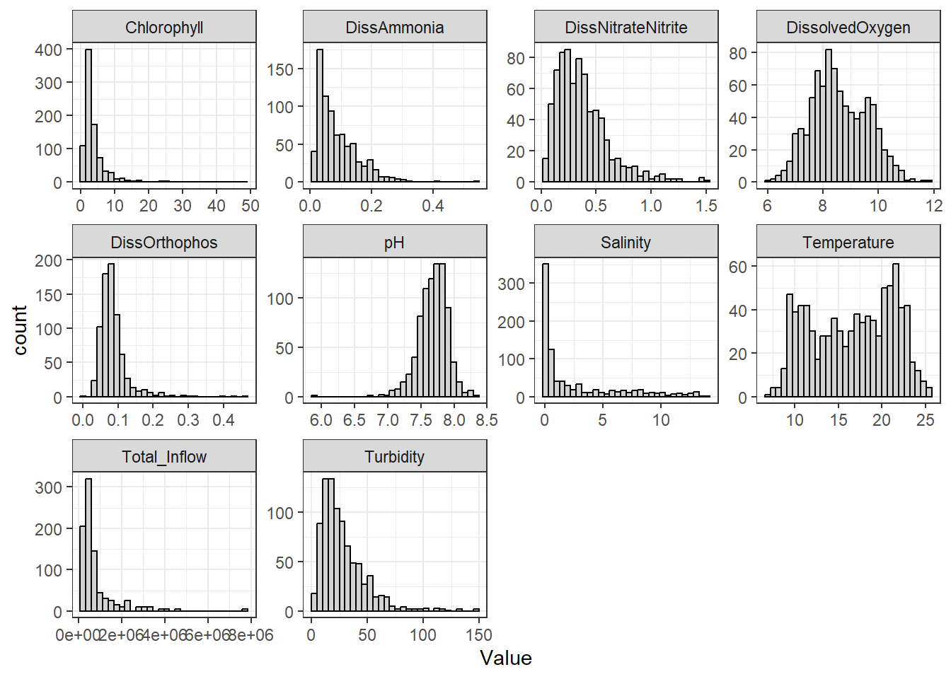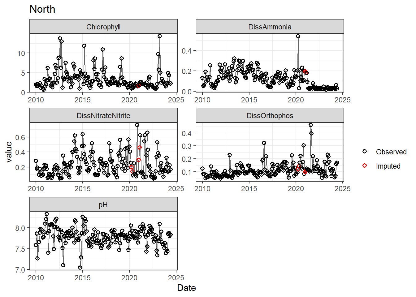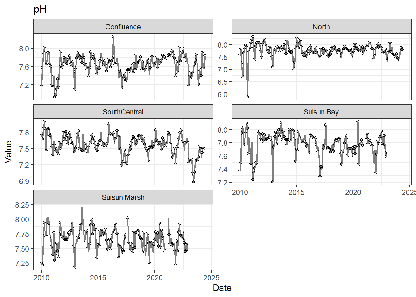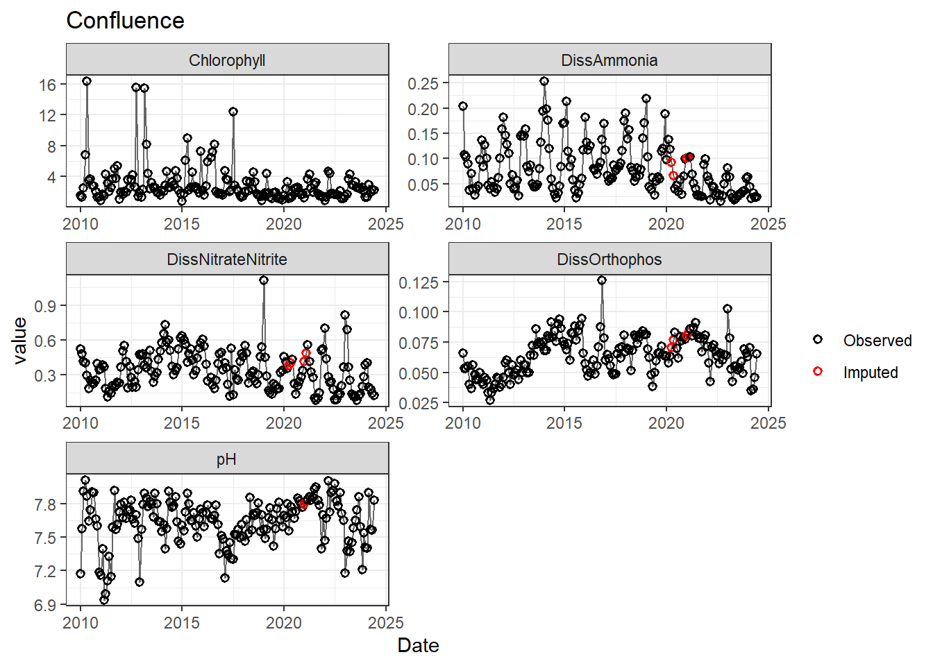 **missing data (Suisun Marsh):** DissAmmonia, DissNitrateNitrite, DissOrthophos, DON, TKN, TotPhos