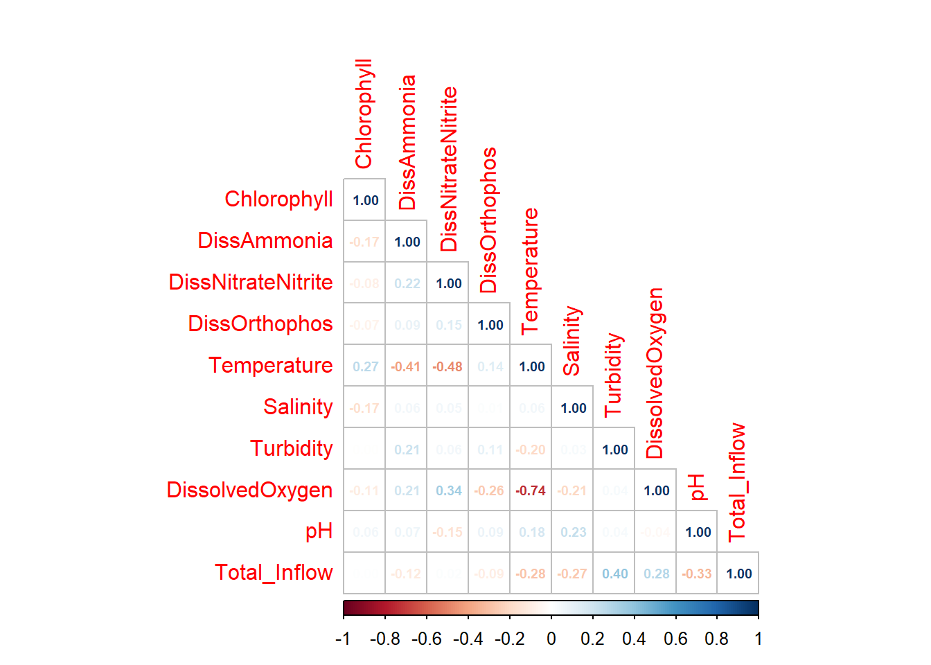 - we can look at the independence claims (first df) to see which (eg. log_DissAmmonia and log_Salinity)